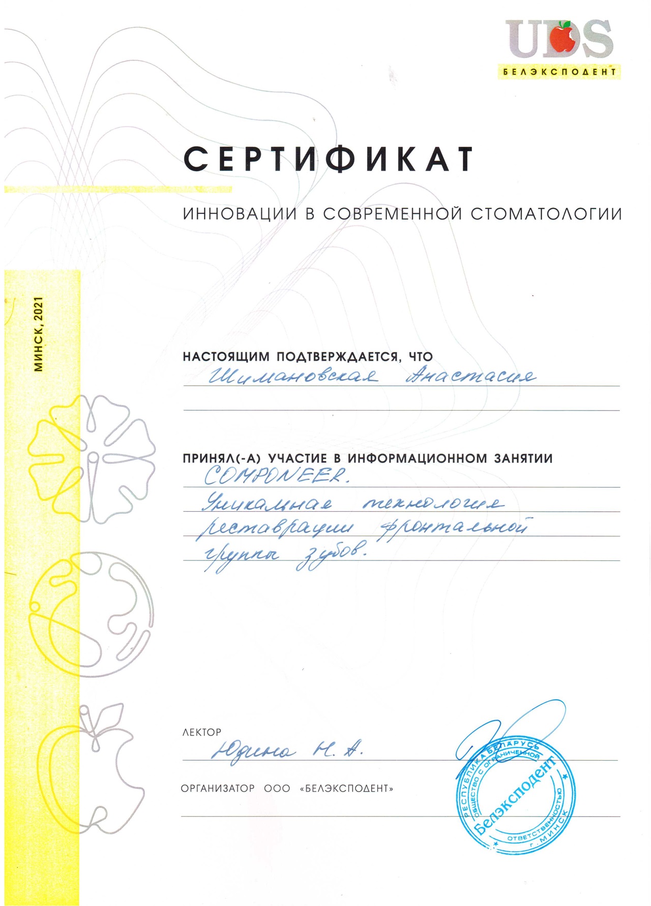 Мы используем в своей практике самые передовые технологии. Движение - это жизнь. Мы не хотим оставаться на месте, наше кредо - это постоянное совершенствование своих навыков и поиск новейших методов, методик и материалов! Для того, чтобы всегда быть в курсе мировых тенденций в области стоматологии, наши специалисты посещают стоматологические выставки, конференции и конгрессы по всему миру.